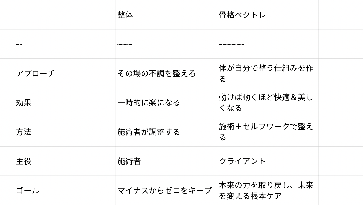 カラダを整える方法としてよく聞かれる「整体」と「骨格ベクトレ」